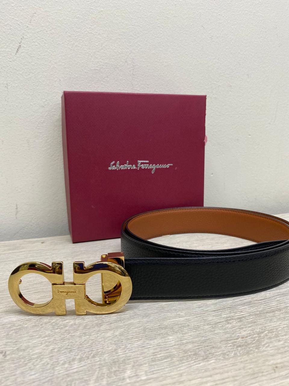 Correa Ferragamo Negra lisa chapa dorada quantity
