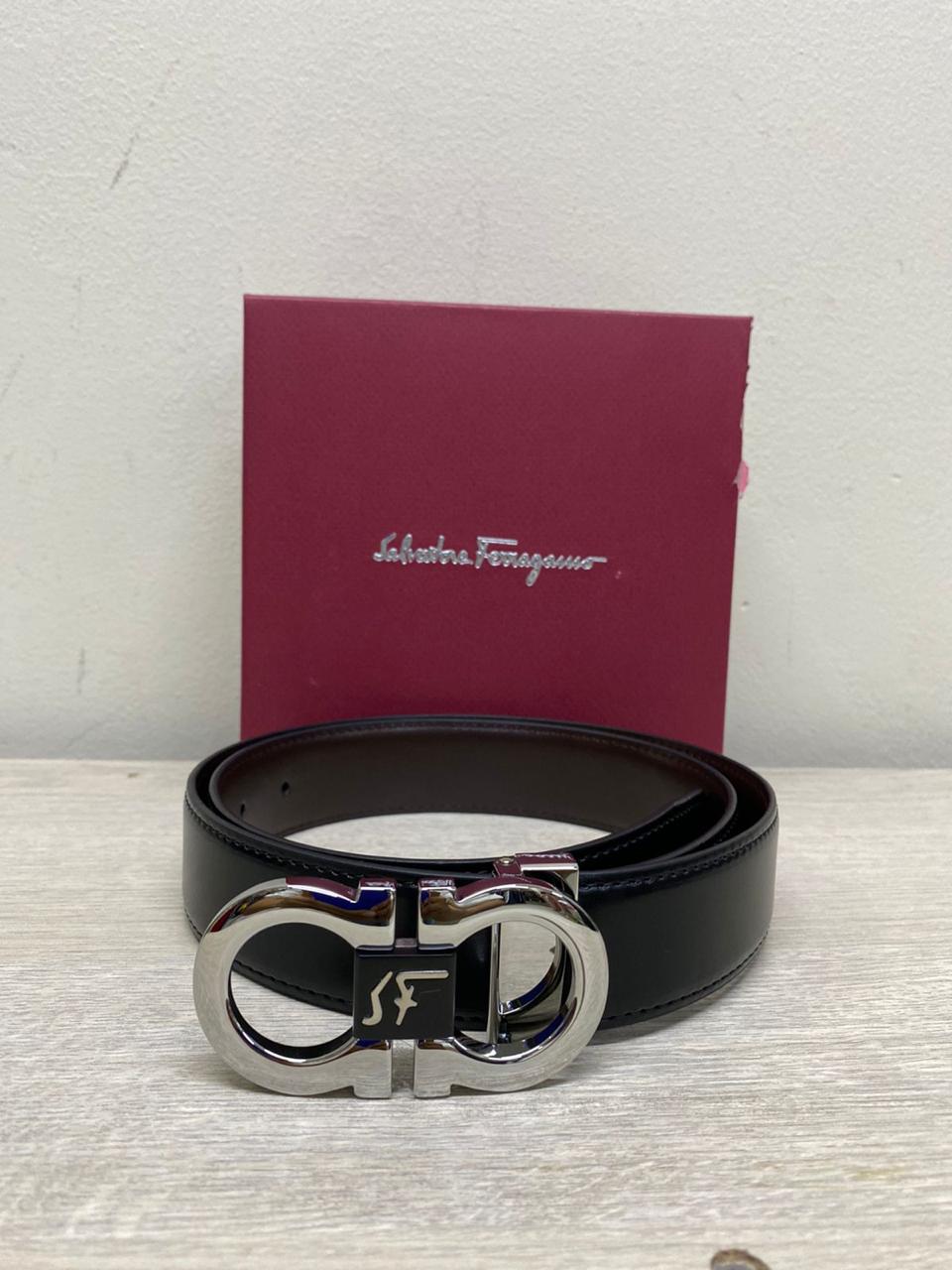 Correa Ferragamo Negra Chapa Plata
